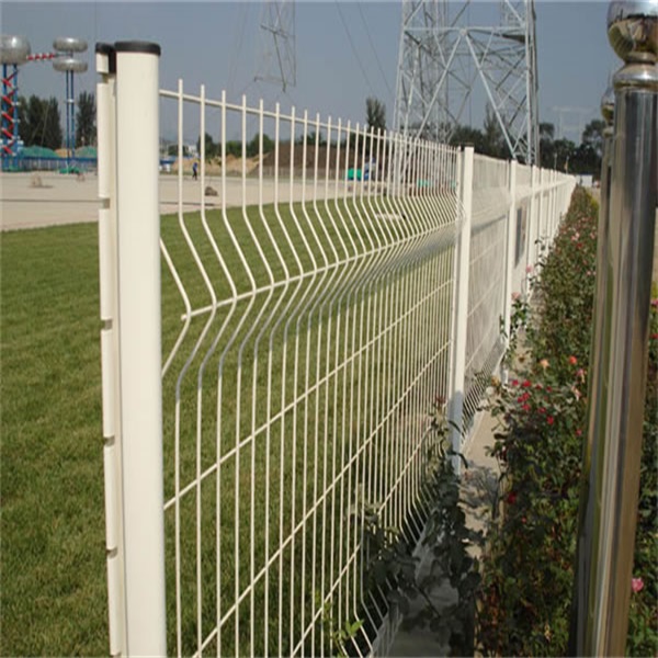 圈地鐵絲網之折彎護欄網(桃形立柱護欄網)美觀華麗、結構堅固耐用、常用于開發區、景區、市政園林等的隔離防護、既起到隔離效果有有美化環境的作用。網片于立柱可采用不同顏色搭配、顏色:白色、綠色、黃色、紅色等。