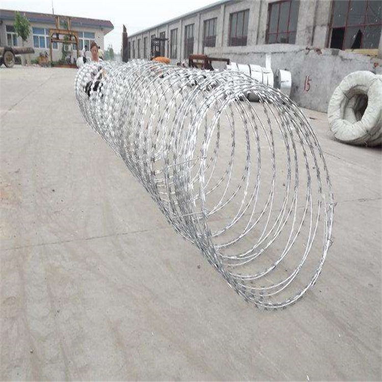 刀片刺繩規(guī)格型號(hào)為BTO-22,刀片厚度0.5±0.05,刀長(zhǎng)22±1,刀寬15±1(單位:mm),直徑為80cm,材質(zhì)為熱鍍鋅,上鋅量30g左右,刺繩拉開后間距在20cm左右。