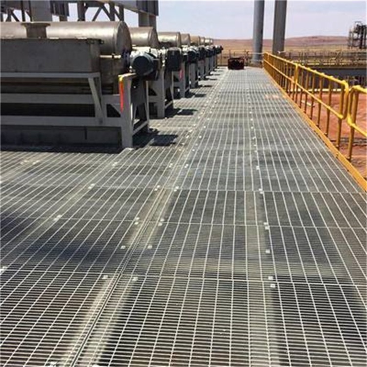 鋼格板的固定方法:可選用焊接和安裝夾緊固兩種方式。焊接的優點是好固定,不會松脫,具體位置在鋼格板的每個角兩根扁鋼上,焊縫長不小于20mm,高不小于3mm的角焊。安裝夾的優點是不破壞熱浸鋅層及拆卸方便,每塊板至少需要4套安裝夾,安裝夾的使用數量隨著板長度的增加而增加的方法是不用下夾,直接將螺釘頭焊在梁上,保證鋼格板不會因安裝夾松脫而從梁上滑落。