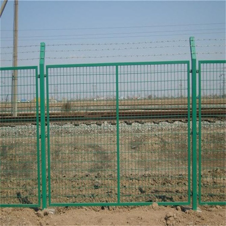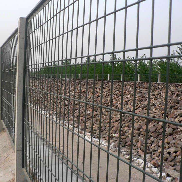 貨運(yùn)鐵路隔離柵欄的外型規(guī)格分別是2760mm*1790mm、2760*1700mm,由φ4.0毫米鐵絲焊接成網(wǎng)眼大小75*150mm的鋼絲網(wǎng)片,邊框由30mm*50mm*2.0mm鋼管制造外框,將網(wǎng)片和外框?qū)嵭薪M焊,防腐處理為整體熱鍍鋅浸塑。產(chǎn)品組建十分簡(jiǎn)單網(wǎng)片的連接件相連接,連接螺栓采用防盜效果的墊圈,防止被盜。