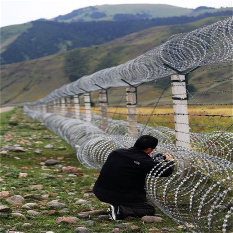 不銹鋼304刀刺網按形狀分為:螺旋式-刀片刺網、交叉式-刀刺網、平板式-刀片刺網、直線式-刀片刺網。采用鋼板(刀板)沖壓成型包附于熱鍍鋅鋼絲(芯線)之上,由銳利尖角鍍鋅鋼板或不銹鋼薄板做刀片,高張力鋼絲做芯線組合而成的。 芯線材質:采用優質的——熱鍍鋅高碳鋼絲、熱鍍鋅中碳鋼絲、不銹鋼板線等等。刀板材質:采用優質的——熱鍍鋅鋼板、不銹鋼板。BTO-22為國內常用型號(其它型號也可以訂做)。