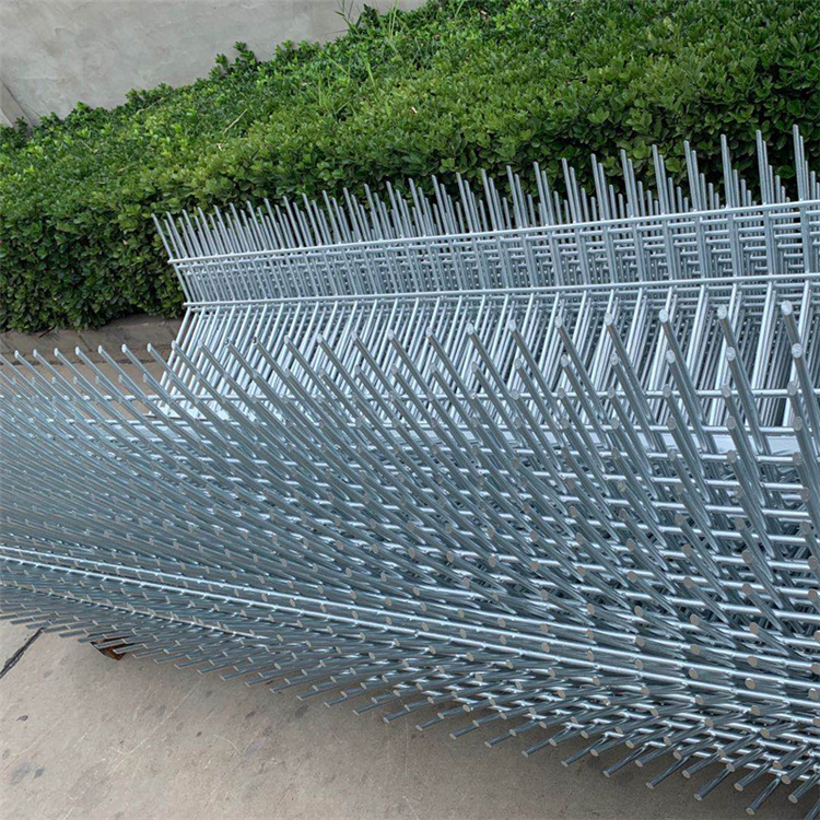 這是我廠新生產(chǎn)出的鐵路防爬刺、圍墻加高刺網(wǎng)產(chǎn)品,采用10個粗鋼筋焊接成鋼筋網(wǎng)片,孔小不可防攀爬和翻越每根鋼筋的頂部都焊接刺尖。表面處理采用整體熱鍍鋅,使用年限在15年以上,增加圍墻高度的同時,也有防攀爬效果。