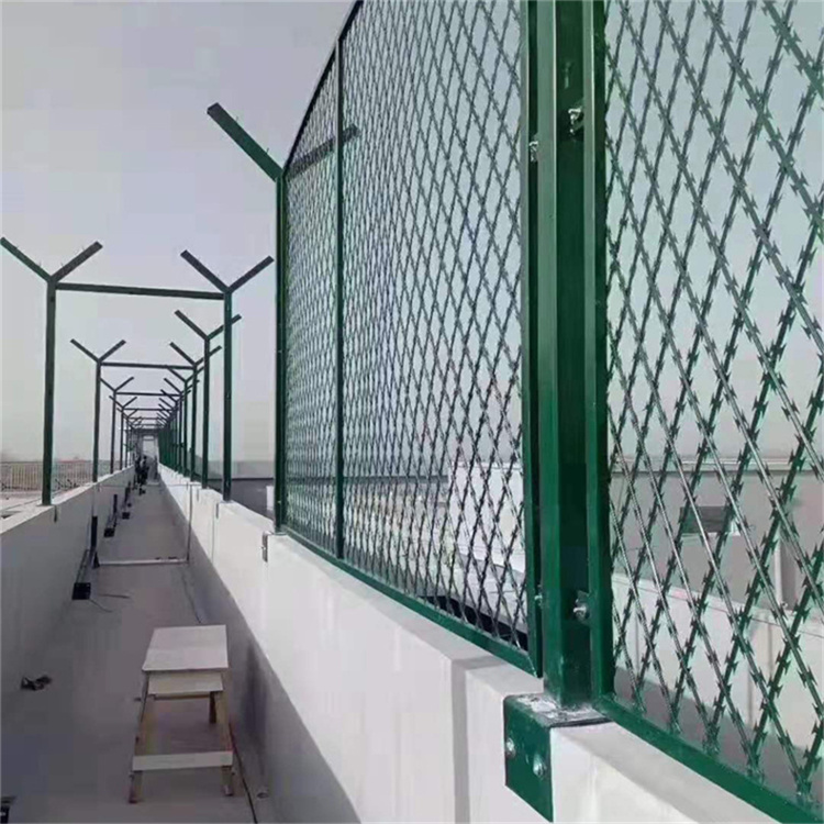 看守所巡邏道加高防攀爬隔離網,頂部加裝刀刺網。近幾年常用的就是焊接刀刺片的隔離網,中間是刀刺焊接的網片,常用規格為75*150*2.5mm;四周焊接邊框,邊框常用規格為20*30mm;立柱選用60*60mm、80*80mm方管,巡邏道側面固定和頂部固定,隔離網頂部再加裝螺旋刀刺網,防爬效果更好。
