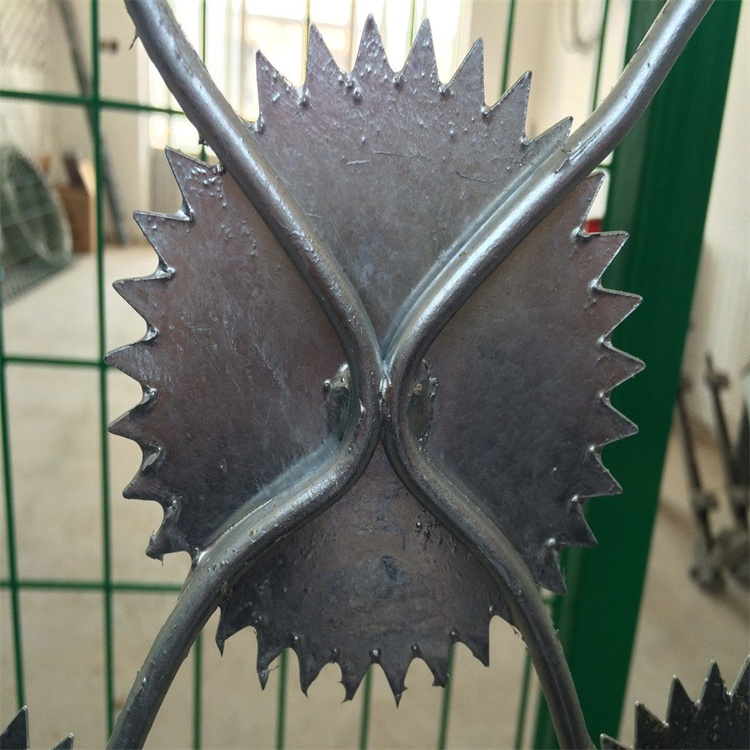 (5)刀片滾網(wǎng)、拉絲、卡扣,均采用不銹鋼材質(zhì)。刀刺網(wǎng)安裝固定卡扣整體調(diào)正,使刀刺網(wǎng)不出現(xiàn)擰轉(zhuǎn)情況,刀刺刺圈分布均勻,每隔30-40cm與拉絲固定;分段連接處需將兩端刀刺網(wǎng)做連接固定,刀刺網(wǎng)固定需緊鎖不得出現(xiàn)松動(dòng)、脫落現(xiàn)象;刀刺網(wǎng)安裝與隔離網(wǎng)平行,上下左右均成直線延伸,轉(zhuǎn)角處需做加密加固處理。
