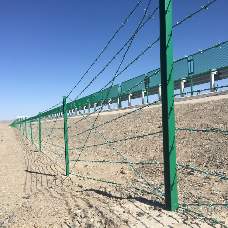 包塑刺繩用途:涂層帶刺鐵絲網是一種現代安全柵欄材料與氣編造的,防止侵者,接頭和切削刀片安裝在頂部的墻上,還特別設計制作使攀登的人困難。