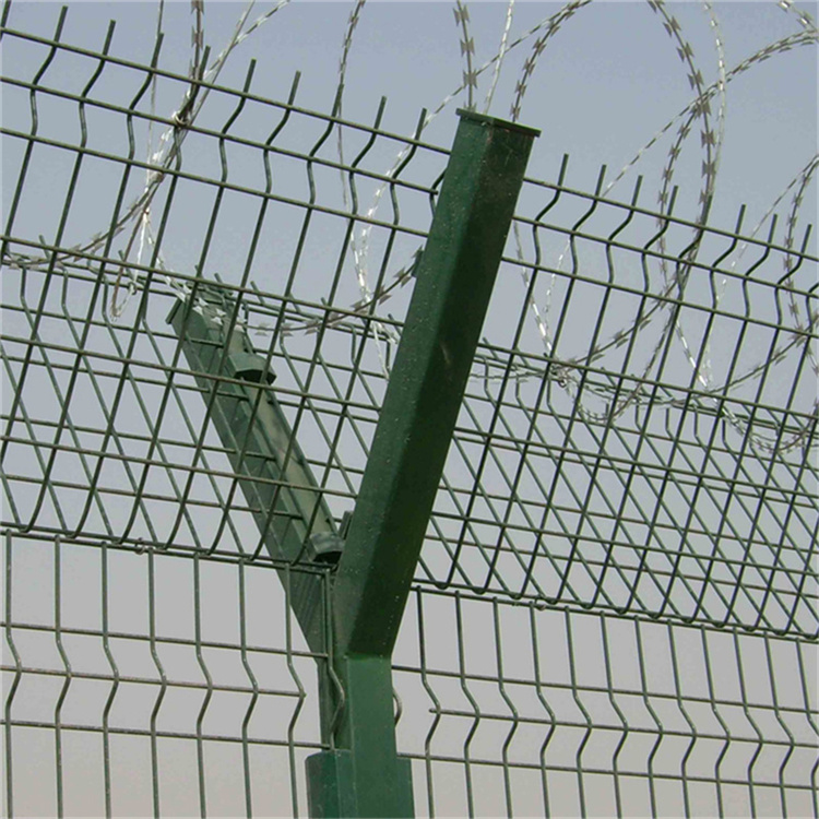 機場圍界網是一種高安全隔離防護網,這種新型隔離網一般由鋼筋焊接網、Y型防護立柱以及蛇腹式刀刺網等幾大主體組成。既有良好的通透性,又能起到強有力的安全隔離防護效果。頂部加裝刀刺網,鋒利的刀型,有效制止的攀爬行為,強有力的發揮著保護機場作用。