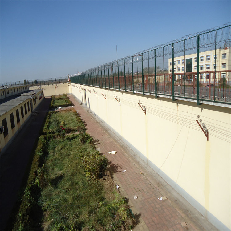 監獄護欄網又稱作"Y型安全防御護網"和機場護欄網通用,是由V型支架立柱,加強型焊接片網,安全防盜連接件和熱鍍鋅刀片刺籠組成強度和安全防御性級別很高。近年來,被廣泛應用在監獄,軍事基地等高安全場所。