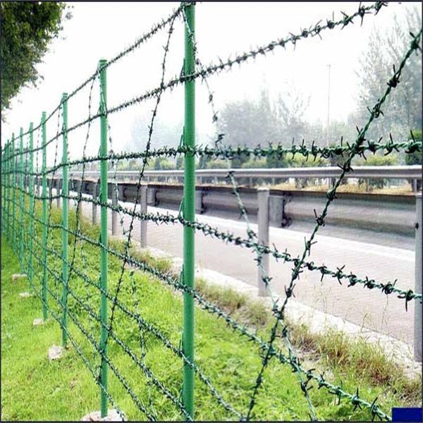 施工步驟; 將刺鋼絲網展開拉直,固定在第一根立柱上,用14#鐵線綁扎固定在鐵鉤上,拉直后用 14#鐵線 綁扎在第2跟立柱上,以此類推,刺圍網掛好后,固定好為止。