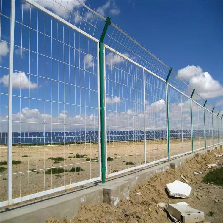 6.光伏站圍網網片施工方法:根據要求,按照基礎及立柱施工,而后進行網片安裝施工。施工工程根據直線原則,同時又要對不平整地形,盡量整成直線平坡或斜披,使結構上不要有太大起伏。
