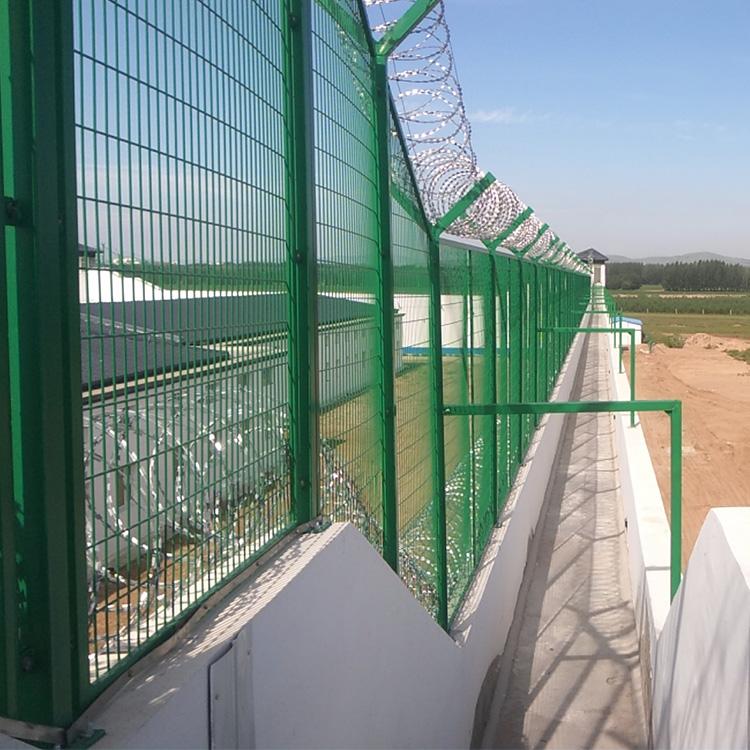 監獄警戒圍墻隔離網一般都采用邊框型,這樣的生產形勢也是為了增加網片的牢固度,網孔可以焊接成正方形、長方形,也可以焊接成菱形,也可以直接采用刀片刺繩焊接網或鋼板網材料的網片,然后在網片的基礎上四周焊接邊框,最后進行pvc浸塑或噴塑處理。