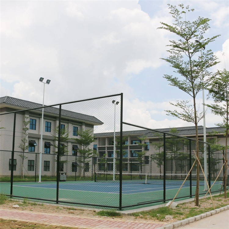 8、網球場圍網建造要堅固,無凸出部分,門把手、門栓要隱蔽起來,以免給打球人造成危險;