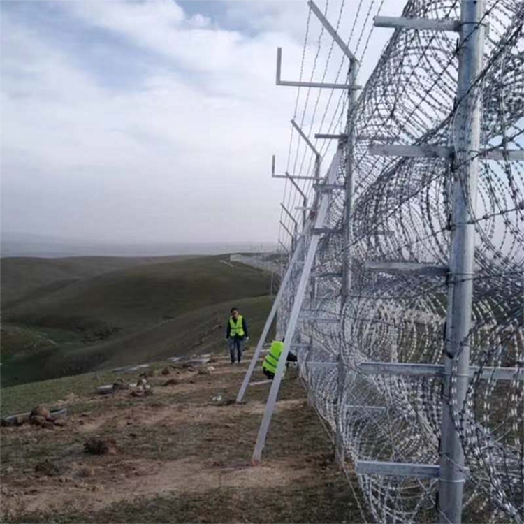 不銹鋼304蛇腹形刀刺網:技術規格刺片長22mm±1mm,寬15mm±1mm,板厚0.5mm±0.05mm,內絲經2.5mm±0.1mm,刀間距36mm±1mm;技術要求:每米10個單圈,刺圈直徑500mm,內外都采用SUS304不銹鋼+二次鍍膜修復劃痕處理(雙層防腐)。用4根直徑2.5mm的不銹鋼鋼絲固定,拉絲和刀刺用直徑1mm的不銹鋼絲或專用卡子捆扎,材質SUS304;鋼板和內絲材質,標準:SUS304;含安裝輔件。