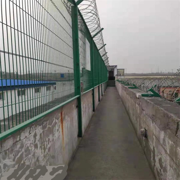 看守所巡邏道金屬隔離網也稱為看守所鋼網墻,是非常重要的監獄安全防護設施,由焊接鋼網加蛇腹式刀刺網組合而成。建設于看守所的內外墻地面及高墻之上,網墻內側或頂部加裝蛇腹形刀刺網,形成一道高不可攀、難以逾越的隔離障礙。配合高壓打擊電網、各種監控報警設備確保監獄看守所安全萬無一失。