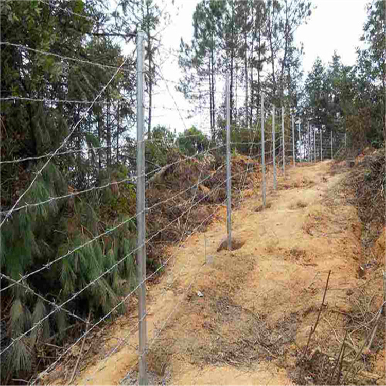 刺繩護欄網 除型號絲徑之分,主線絲又分為單股刺鐵絲、雙股刺鐵絲、三股刺鐵絲,刺絲均為四個刺頭。全自動刺繩機擰編而成,牢固美觀。按處理工藝分為電鍍(冷鍍)刺鐵絲、熱鍍鋅刺鐵絲、浸塑刺鐵絲。