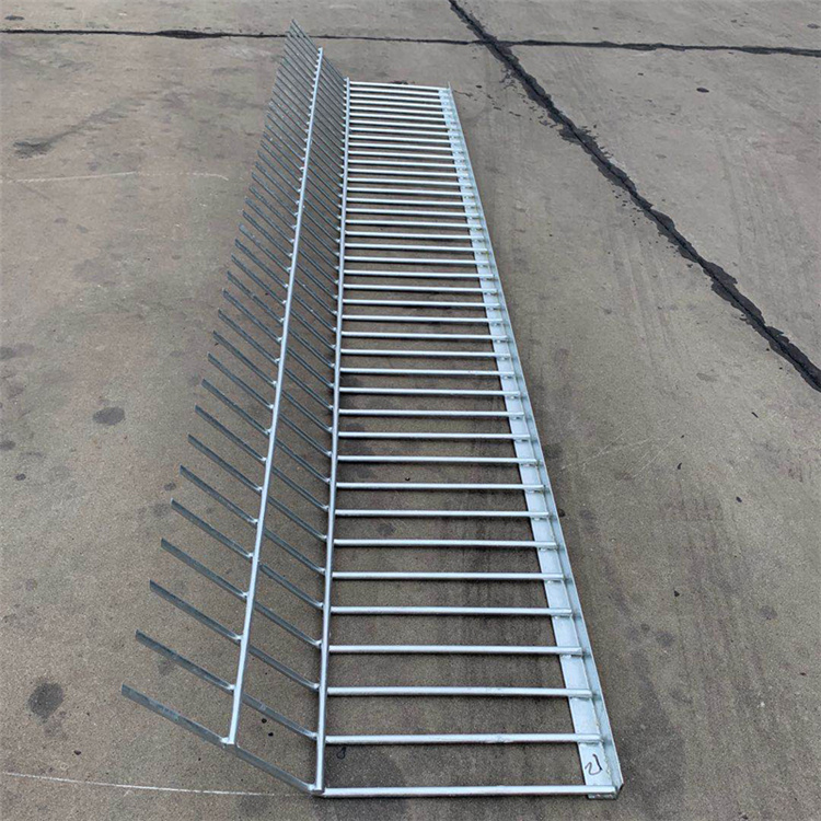 2、鐵路線路角鋼防護柵欄網框:方管60×40×2.5mm,左右方管40×40×2.5mm,中間焊接40×3mm的扁鋼,四道加強筋為40×4mm扁鋼,長度分別為1000和1200mm;