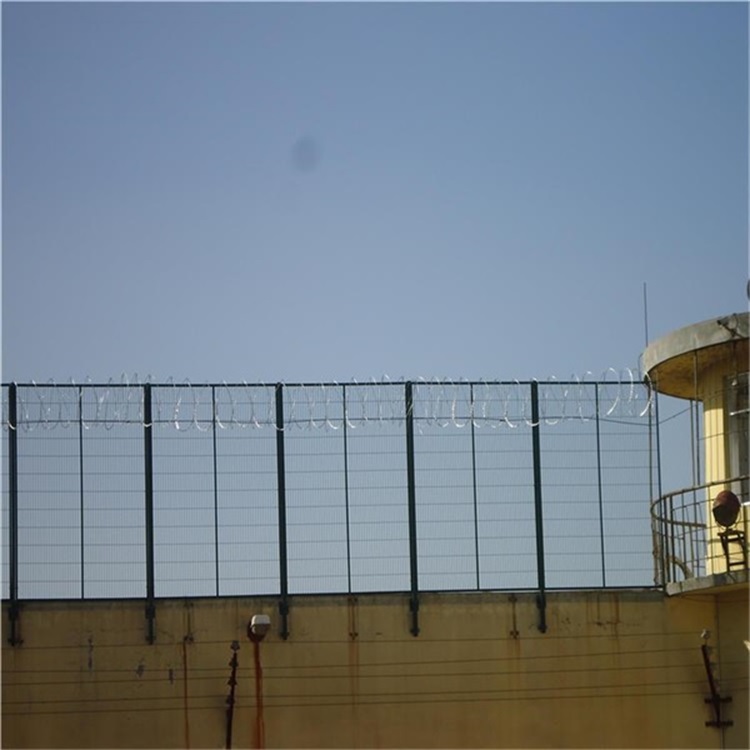 這三種安裝方式都是平時監獄隔離網和看守所鋼網墻墻常見安裝方式。安裝費用也都在50-80元每米不等。具體還要看現場情況來定。巡邏道隔離網頂部加裝蛇腹形刀刺網,形成一道高不可攀、難以逾越的隔離障礙。