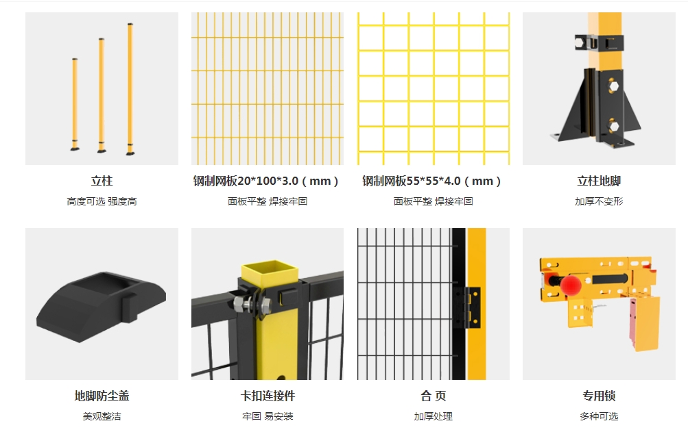 機(jī)器人圍欄介紹:機(jī)器人圍欄是在機(jī)器人正常工作生產(chǎn)之外的一定距離內(nèi)設(shè)置的防護(hù)措施,為人員或機(jī)器人提供保護(hù),防止材料或其它部件從機(jī)器人中噴出,以確保工作人員和機(jī)器人的安危。同時(shí)將安裝安全門或留出通道,以方便貨物進(jìn)出和人員維護(hù)。