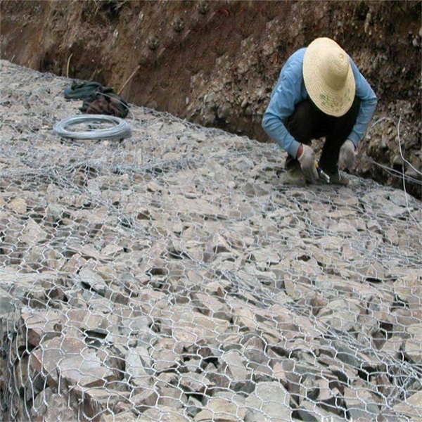 3.安裝好后,將雷諾護墊放在指定位置,再將各個網墊連接起來。為了保持整體架構便于連接,可以空箱連接后在裝石料。連接時我們提供綁絲或者環形緊固絲。護坡時需用與坡體垂直寬的雷諾護墊。除了用于河渠緩坡外,雷諾護墊還可以用于陡坡中,在上層底板上每2m或按工程需求楔入硬木楔。安裝雷諾護墊需小心安置組裝。