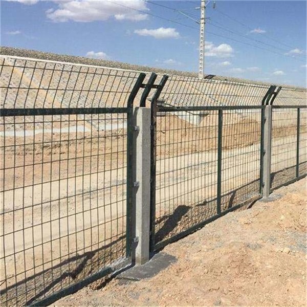 鐵路防護(hù)柵欄網(wǎng)為冷拔鋼絲點(diǎn)焊熱浸塑網(wǎng)片,外型尺寸為2760*1790mm,網(wǎng)格尺寸為75*150mm,鋼絲為φ4mm , 網(wǎng)片邊框采用20*30*1.5mm的方管焊接而成,網(wǎng)片連接片由40*40*4mm鋼片制作,防盜螺栓的螺柱、螺帽、墊圈等作熱鍍鋅處理。鐵路柵欄網(wǎng)片表面采用熱浸塑處理,顏色為墨綠色,整個(gè)結(jié)構(gòu)表面平整光滑,色澤均勻,無(wú)漏鍍、開(kāi)裂、脫皮及脫落等缺陷。網(wǎng)片浸塑所用的材料及PE表層環(huán)保性好,無(wú)污染。
