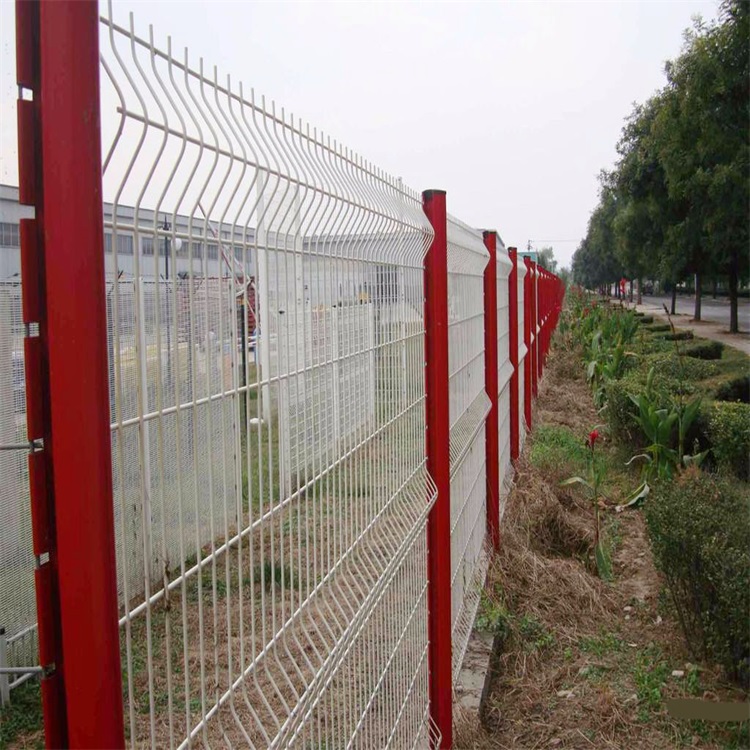 光伏圍欄網(wǎng)樣式-桃型柱護欄網(wǎng):絲徑5-6mm、孔徑6*20cm、5*20cm、網(wǎng)高1.8-2.2m、網(wǎng)寬3m、立柱用70*100*1.2、網(wǎng)片帶三道折彎;如果您想選擇美觀性強的,價格稍貴點也可以接受的話,您可以選擇桃型柱護欄網(wǎng)。樣式如下圖: