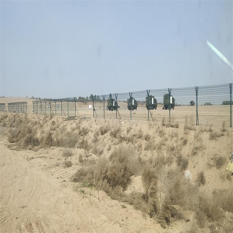 邊境Y型護欄網圍墻主要采用焊接網隔離柵,1、采用5.0mm高強度低碳鋼絲焊接。2、網孔:50mmX100mm,50mmX200mm。3、網片中帶有V型加強筋,可大大增強圍網的防沖擊力。4、立柱為60*60mm、80*80mm的矩形鋼,頂端焊有V型之架。5、表面處理:產品均為熱鍍鋅后采用高質量的聚酯粉末靜電噴涂,采用國際流行的RAL顏色,或低碳鋼絲粉末浸塑,塑層厚,防腐蝕力強。