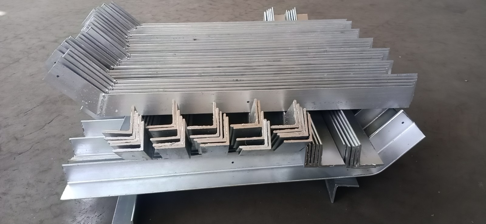 角鐵支架采用50*50*4.5mmQ235角鐵和寬50mm,壁厚4.5mm,長度分別是:246、428的兩塊Q235鋼板焊接制作,三角鐵上部焊接掛鉤采用長度30mm的Φ5mm鋼筋制作,加密支架采用50*30*2mmQ235矩管(或50*50*4.5mmQ235角鐵)制作