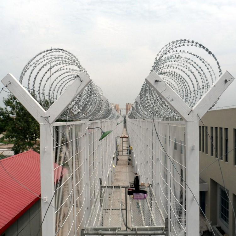監(jiān)獄看守所巡邏道防護(hù)網(wǎng)用途:用于監(jiān)獄、看守所、拘留所、戒毒所、軍事禁區(qū)、邊防線等高安全場所。 監(jiān)獄隔離網(wǎng)具有結(jié)構(gòu)新穎、堅(jiān)固緊密、網(wǎng)面平整、網(wǎng)孔均勻、刀鋒銳利、防攀爬防腐蝕性強(qiáng)等特點(diǎn)。
