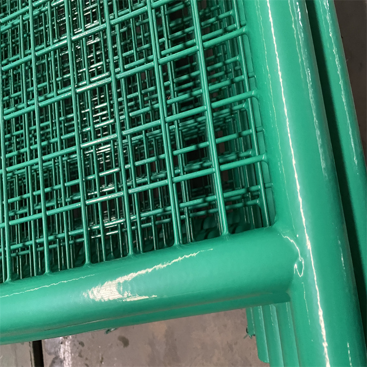 防腐處理:金屬網片及柵欄門的網片成形后應整體鍍鋅并進行熱浸塑(或噴塑)處理,鍍鋅量270g/m2,浸塑厚度0.8mm1.2mm,顏色選用墨綠色。涂層應均勻,顏色一致,表面光滑,無流柱,滴瘤、粉泡、漏鐵等缺陷。網片制造精度要求:長度誤差≤2.5mm,高度誤差≤3.0mm。網片平整度要求:凸起或凹進值≤5.0mm。冷拔鋼絲鍍鋅前直徑誤差≤0.06mm。焊接網孔誤差≤3.0mm。焊接網片連接板時,連接板焊接位置應嚴格控制在設計位置,其位置誤差≤1.5mm。矩管邊框與連接板、網片鋼絲與鋼板、網片鋼絲與矩管邊框的焊接宜采用電阻焊、如用釬焊,應選用合適的焊條,使其變形*小。焊接后應清理焊渣。對焊接產生的變形,應進行平整處理。為保證網片自身有足夠的強度,網片焊接點的強度應大于1KN,焊接點脫落數小于4%