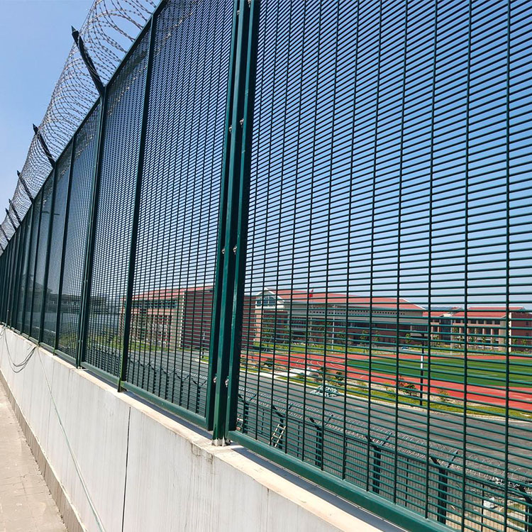 看守所加高圍墻刀刺網(wǎng) 圍墻防攀爬隔離網(wǎng)通常采用鋼絲直徑為5mm、6mm、6.5mm,網(wǎng)孔采用50mm*100mm、50mm*50mm、50mm*200mm、50mm*150mm,組成結(jié)構(gòu):把網(wǎng)片焊接在鐵管框架上,框架是方管或者圓管焊接成的框架結(jié)構(gòu),在框架上焊接用于個(gè)立柱連接的連接板,用防盜螺栓與立柱連接。為了網(wǎng)片的防拆卸性能,網(wǎng)片連接方式采用特制防盜緊扣件,有效防止人為的破壞性拆卸。