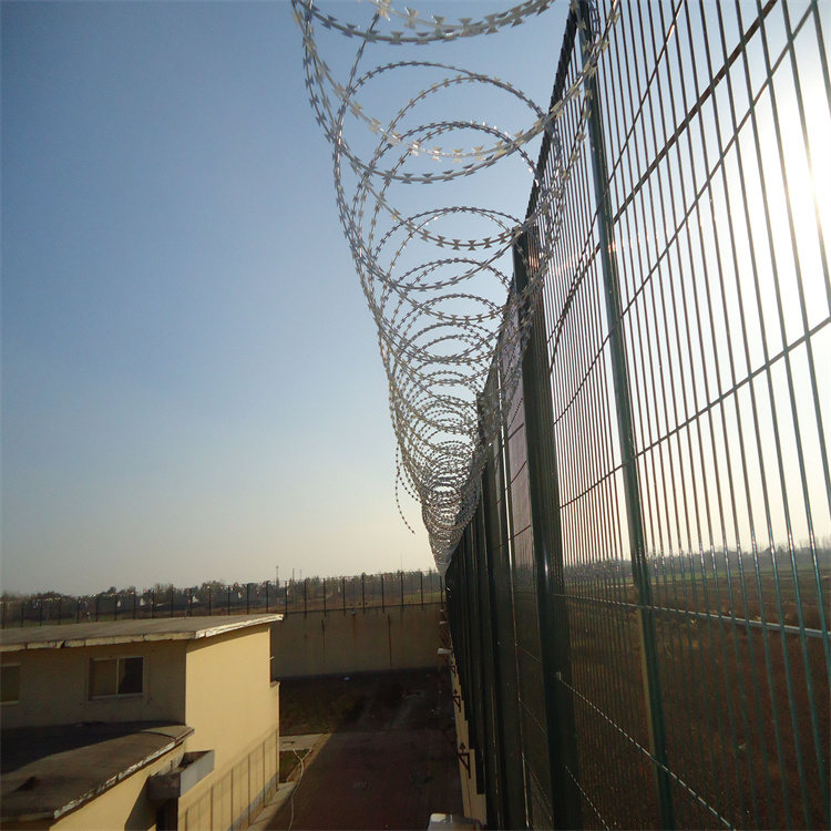設置邊境隔離網,我們常見的樣式有刀片刺絲滾籠,這種產品一般使用熱鍍鋅材質或者304不銹鋼,架設這種滾籠,發揮其防盜防爬、嚇阻與隔離的作用,具有美觀、防阻效果好、施工便利等優點。