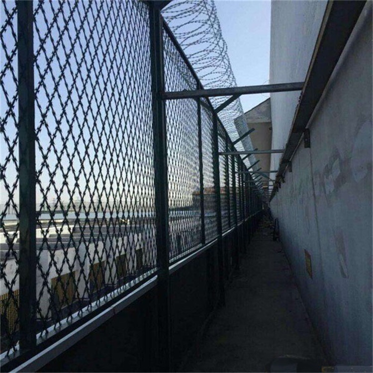 監獄防護網 中的 監獄高安全防護網 的尺寸設計,采用大直徑高強度...刀片刺網是在兩條刀片刺網之間以不銹鋼片和鍍鋅鋼片強力夾扣,展開后即呈交叉狀,美觀又實用。防腐形式:電鍍、熱鍍、噴塑、浸塑。 [ 查看詳情 ]