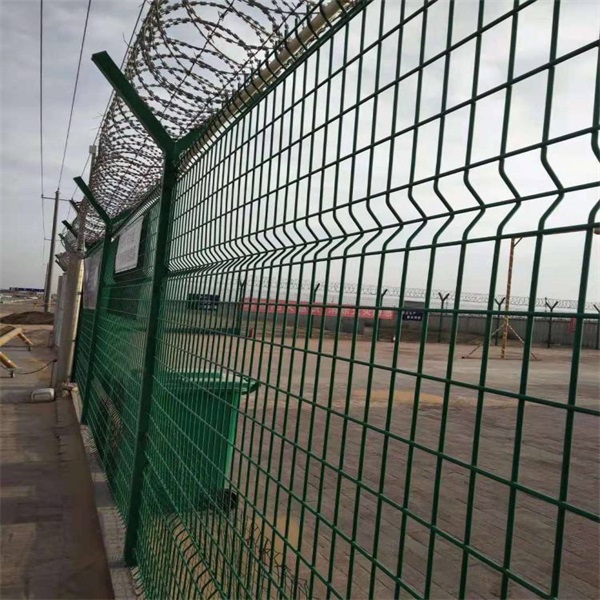 機場鋼絲圍欄網 一般采用5.0mm的低碳鋼絲焊接﹔網孔(mm) 50x100 50x150...能力好,網片連接方式采用特制SBS緊扣件,有效防止人為的破壞性拆卸,橫向四道折彎加強筋,使網面強度顯著增加﹑。 [ 查看詳情 ]