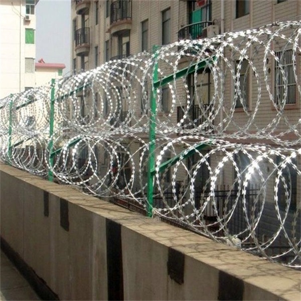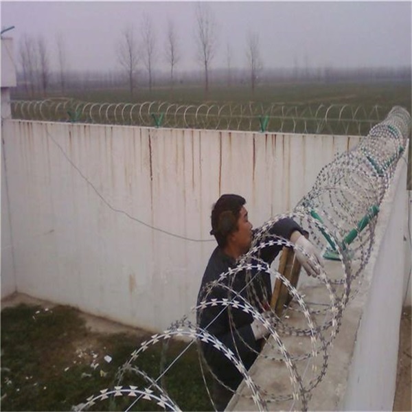 圍墻防護刀刺滾網 常用的是BTO-22刺絲滾籠,每三米一組熱鍍鋅支架,表面采用...可分為兩種,一種是全熱鍍刀片刺繩,一種是半熱鍍刀片刺繩,價格只是稍微低于全熱鍍,除非是一次性使用,否則不推薦。 [ 查看詳情 ]