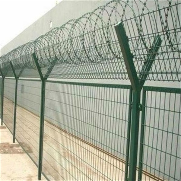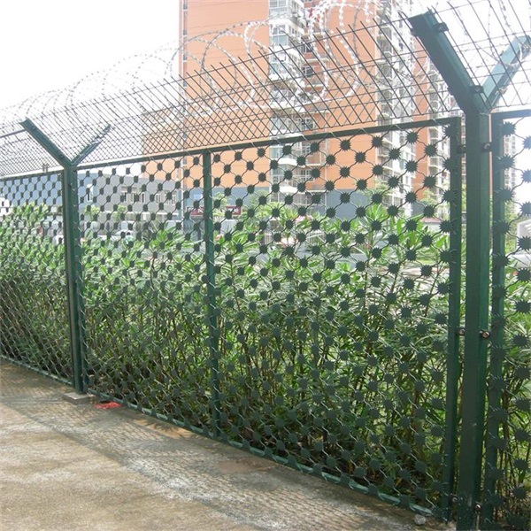 監獄隔離網 大概分為四種類型: 一、在普通隔離網的基礎上將立柱改良成Y型,增...刺隔離網 ,隔離網的網片是菱形孔的美格網,在每個鋼絲相連接的焊點上焊接梅花刺片,刺片鋒利,也就無法攀越。 [ 查看詳情 ]