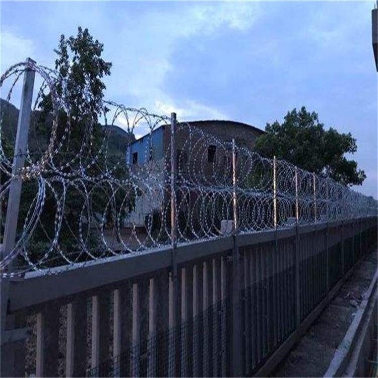鐵路刀刺網的組成及工藝 刀刺隔離網 的組成: 刀刺網主要采用刺鐵絲和立柱組合,做防護網使用,起到隔離防護的作用刺鐵絲也可配合柵...用。同時該產品具有美觀、防阻效果好、施工便利等優點. 刀片刺網 又名刀片刺繩,是一種發展起來的防護、隔離能力較強的新型防護產品。 [ 查看詳情 ]