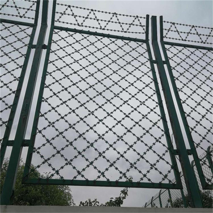 看守所 戒毒所 巡邏道 隔離網 鋼網墻 刀刺網 的應用方式 平板式刀片刺網是刀片刺網的一種新的應用方式,它是將單圈螺旋刀...點:本產品具有防腐、防老化、抗曬、耐用等特點,防腐蝕,比一般鐵絲使用壽命更長。適用于小區、倉庫、畜牧廠、農場、礦山、監獄、國防重地等。 [ 查看詳情 ]