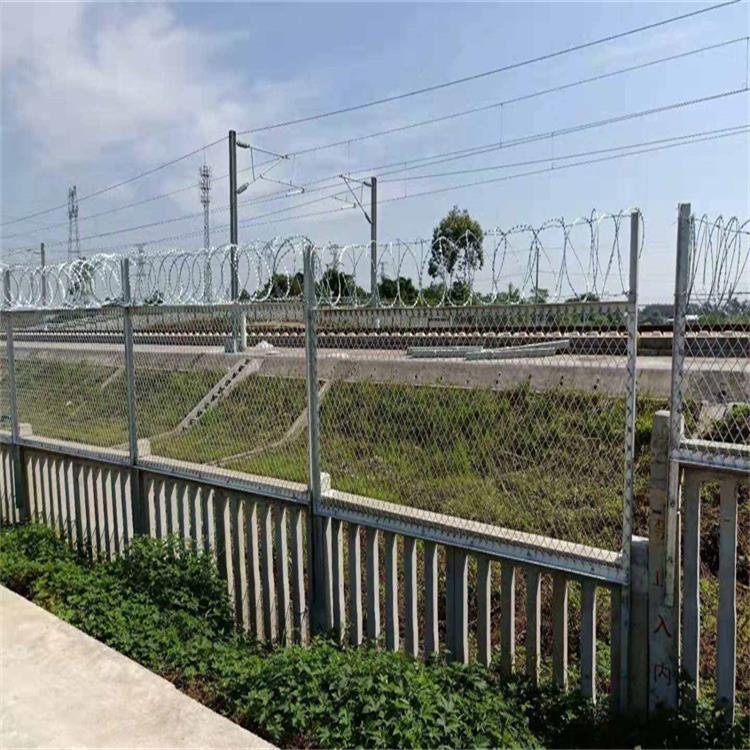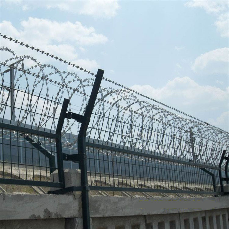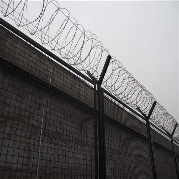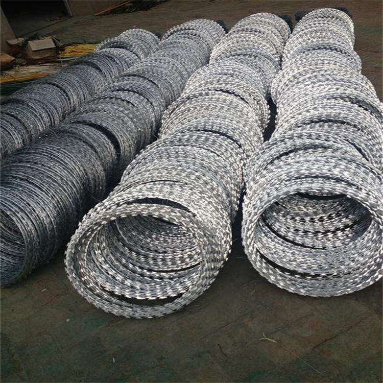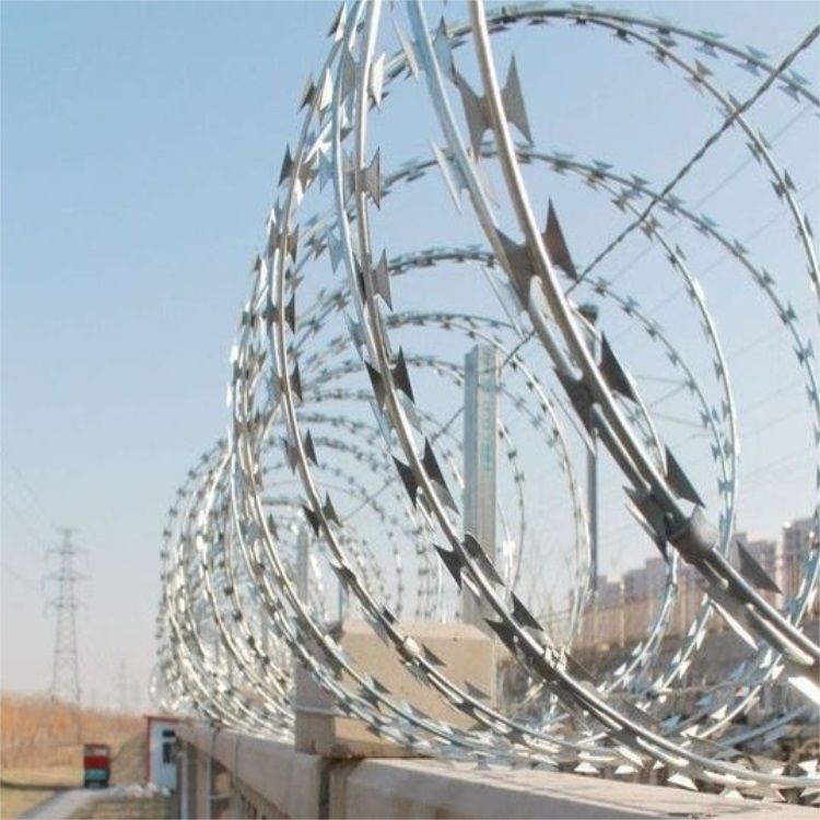 刀片刺網 蛇腹形刀刺網 看守所隔離網 : 蛇腹形刀刺網 呈螺旋狀,材質一般分為熱鍍鋅材質和不銹鋼材質,結... (5)安裝好支架立柱了,先把要安裝刀片刺繩的拉絲給固定上,然后利用拉絲的支撐力來安裝刀片刺繩,并用專用的卡扣、卡鉗進行固定。 [ 查看詳情 ]