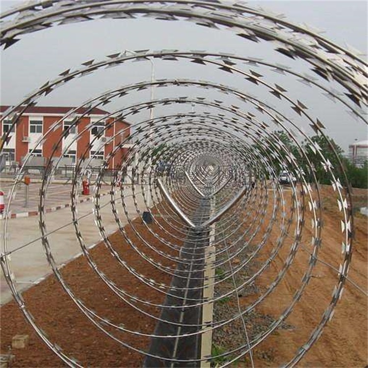 看守所刀刺網鋼網墻 組裝結構:Y型立柱鋼網墻一般頂端都設有V型支架與立柱焊接...刀刺網通常卡扣之間的距離是120mm,直徑500mm的刀刺網,覆蓋一米的重量約為2.38公斤。 [ 查看詳情 ]