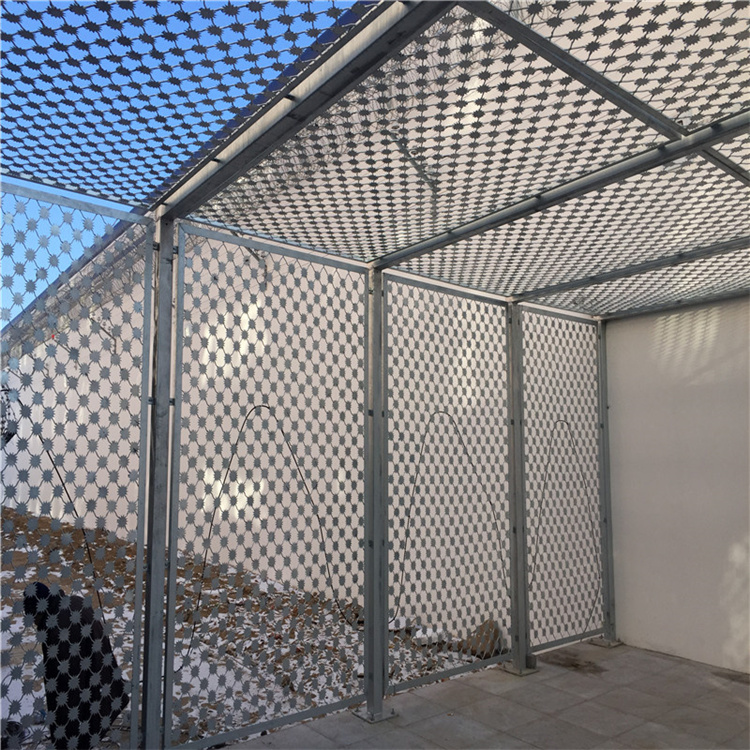 監獄梅花形金屬隔離網 技術要求 (1)立柱采用114*4㎜熱鍍鋅圓管,地上高度為45...米,相鄰每圈間距不大于15cm,刀片為304不銹鋼板沖壓的尖銳菱形,刀長21mm、寬15mm,厚0.5mm。 [ 查看詳情 ]