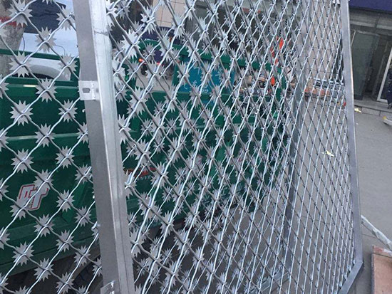 看守所鋼網墻組成結構:首先把網片焊接在鐵管框架上,框架是方管或者圓管焊接成的框架結構,在框架上焊接用于個立柱連接的連接板,用防盜螺栓與立柱連接。為了保證網片的防拆卸性能,網片連接方式采用特制防盜緊扣件,有效防止人為的破壞性拆卸。