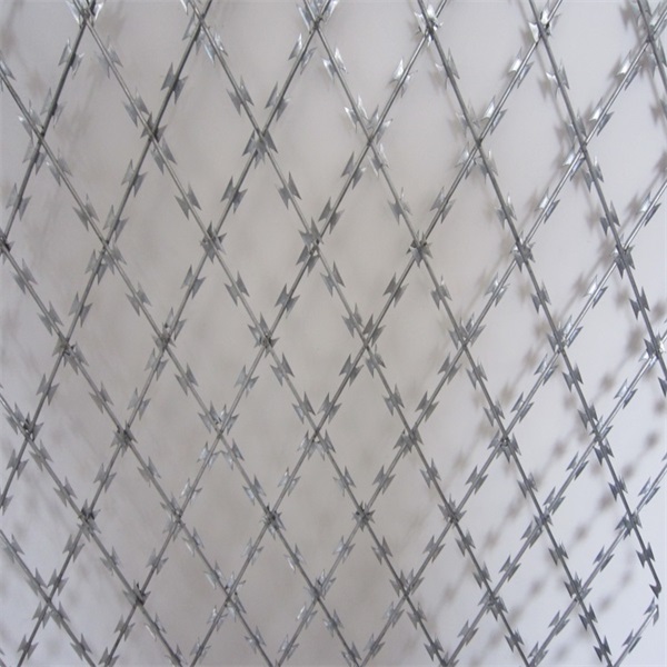 直線型刀片刺網由銳利尖角鍍鋅鋼板或不銹鋼薄板做刀片,高張力鋼絲做芯線組合而成的阻絕器材,把刀片刺絲焊接成菱形孔或者方形孔的刀片刺網,網狀的刀片刺網刀片鋒利,手不能握,腳不能攀登,堅決阻止人逾越的防護墻,具有很強的恐嚇和阻止效果,既美觀又實際效果顯著 。由于刺網造形獨特不易觸摸,因而能達到極好的防護隔離效果。
