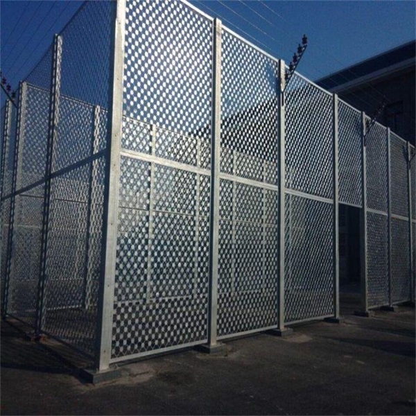 監獄放風場鋼網墻優勢,監獄放風場鋼網墻通常采用鋼絲直徑為5mm、6mm、6.5mm,網孔采用50mm*100mm、50mm*50mm組成結構:首先把網片焊接在鐵管框架上,框架是方管或者圓管焊接成的框架結構,在框架上焊接用于個立柱連接的連接板,用防盜螺栓與立柱連接。為了保證網片的防拆卸性能,網片連接方式采用特制防盜緊扣件,有效防止人為的破壞性拆卸。