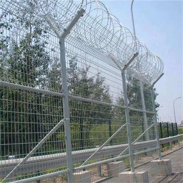 機場鋼筋護欄網 用的材料使用壽命長,一般絲徑是由塑后6毫米的絲焊接而成的,...盜連接件和熱鍍鋅刀片刺網組成強度和安全防御性級別很高。近年來,被廣泛應用在機場,軍事基地等高安全場所。 [ 查看詳情 ]