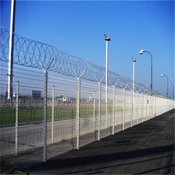 Y型機場圍界網頂部裝有刀片刺絲和刀片刺繩,安全保護功能將得到很好的加強。其產品外形美觀,顏色多樣,不僅起到圍欄的作用,還起到美化的作用。