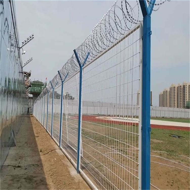 4、看守所隔離柵所有部件,應滿足防腐、表面平整、防老化、防酸堿、不褪色等要求。隔離網主要部件采用浸塑防腐處理,刀刺網和連接緊固件應經過特殊防腐處理或采用不銹鋼材。(整體防腐年限應不低于10年)。